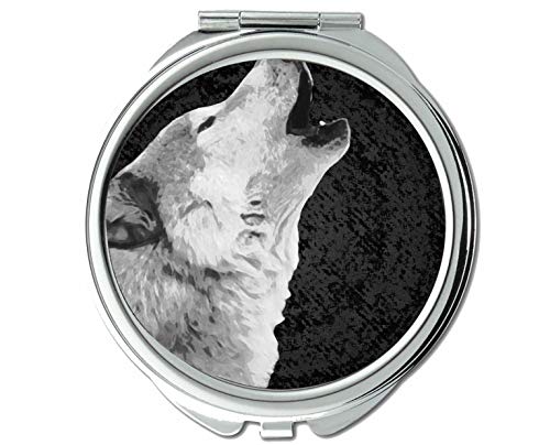 Yanteng Specchio, Specchio rotondo, specchietto tascabile Wolf, 1 ingrandimento X 2X