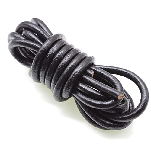 YanYue m Colore Nero Vera Pelle Genuina Cavo 2 3 4 5 6 8 mm Rotonda Corda di Cuoio Piatta String Fit Collana Braccialetto Gioielli Fai da Te Fare-Round 8mm