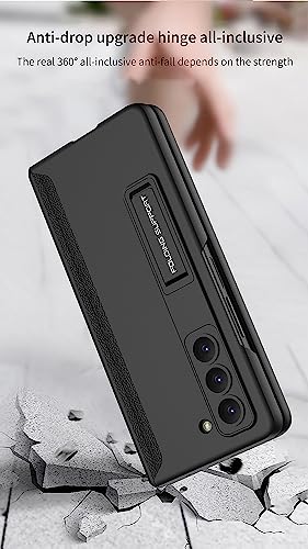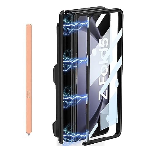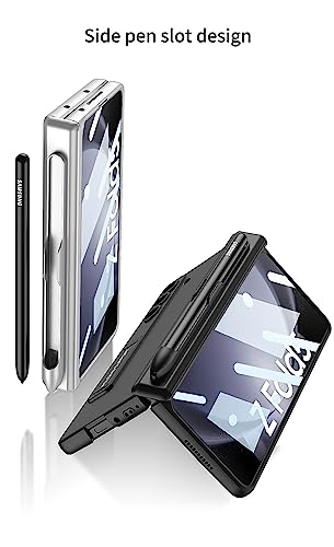 Yanzi Compatibile con Samsung Galaxy Z Fold 5-5G Cover(2023)+9H Vetro Temperato[S-Pen Slot]-[Supporto]-[Antiurto] Pieghevole Magnetico Cerniera Protezione Custodia per Galaxy Z Fold 5-Nero