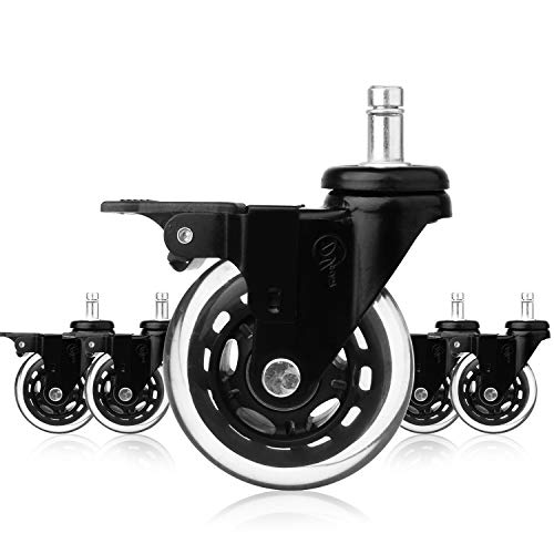 YAOBLUESEA Set di 5 Rotelle Sedia da Ufficio Ruote Girevoli Ricambio a Rotelle con Freno 75mm,Adattamento Universale