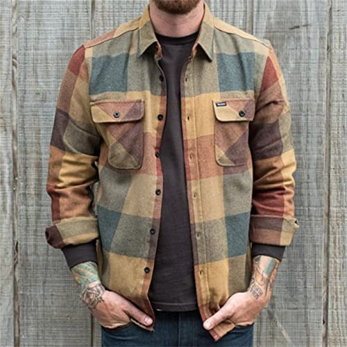 YAODAMAI Camicia da Uomo Camicia di Lana a Quadri Camicia Casual Risvolto Pulsante Camicia Top