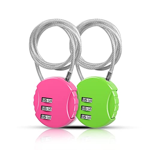 YAODHAOD Lucchetto Valigia a 3 cifre 2PCS, Lucchetto Combinazione Viaggio, lucchetti TSA, per scuola, viaggi, bici, zaini, armadietti(50cm, rosa + verde)