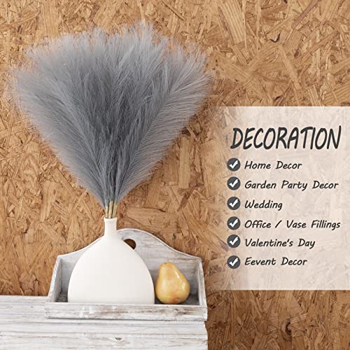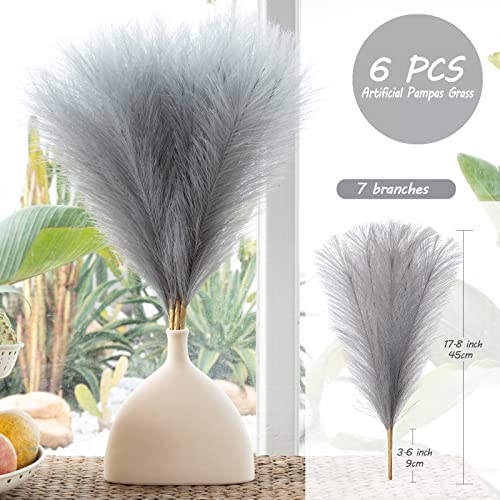 YaoFaFa Erba di Pampa Artificiale Grigio - 6 PZ 18''Erba di Pampa Artificiale Lanuginosa, Piccoli Rami di Erba di Pampa per Boho Home Decor, Decorazione di Nozze (Grigio)