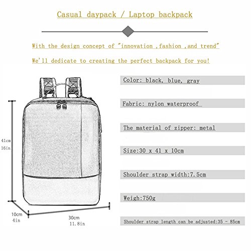 YAOHU, zaino per laptop con scomparto di dimensioni fino a 39,6 cm, in nylon impermeabile leggero. Borsa a tracolla per lavoro, scuola, da viaggio nero Black 41x30x10cm