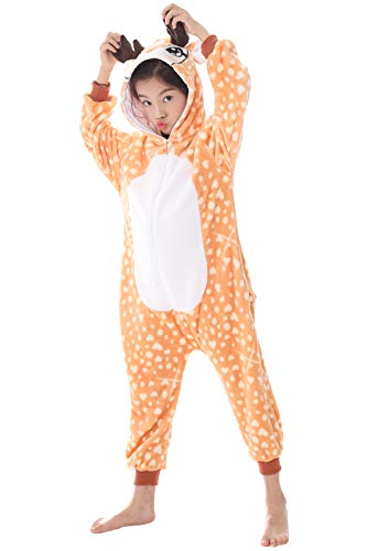 YAOMEI Bambini Unisex Kigurumi Pigiama Onesie, 2018 Ragazza Ragazzo Anime Cosplay Halloween Natale Party Costume Attrezzatura Sleepwear (90-100CM(35''-39''), Elk)