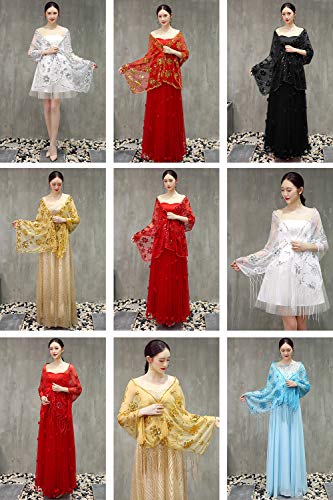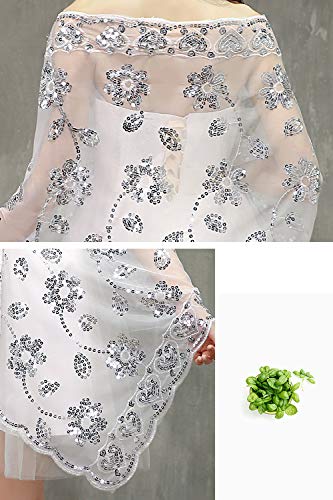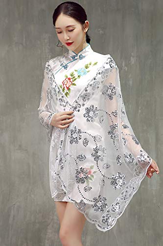 ❤ Design unico: ★ motivo Paillettes con paillette in rilievo sullo scialle con nappe, ★ nappe in pizzo cave. Lo chiffon crea un look elegante e sfarzoso - Tessuto chiffon di raso delicato e leggero, perfetto per matrimoni, crociere, eventi serali ed eventi speciali. Mostra i tuoi sentimenti romantici.
