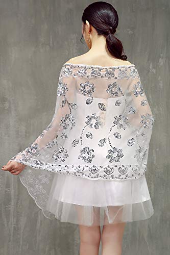 YAOMEI Donna Sciarpa Stole Scialli, Sequin in rilievo degli anni '20 Ricamo Scialle per il commercio nuziale bridemaids Abiti da sera partito (74,8 * 23,6 pollici (190 cm * 60 cm), Bianco)