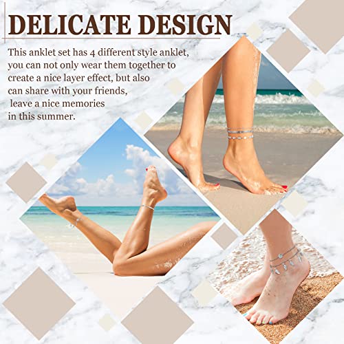 Ricco di quantità: il pacchetto viene fornito con 4 pezzi di gioielli da cavaglia boho per donne, affascinanti e belle, e ognuna è progettata in stili diversi, quantità abbondanti sono sufficienti per soddisfare le tue varie esigenze di abbigliamento