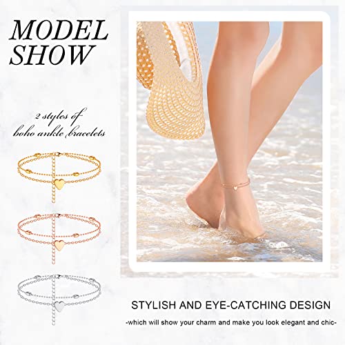 Ricche quantità: il pacchetto viene fornito con 3 cavigliere con ciondolo a forma di cuore per donna nei colori oro, argento e oro rosa, affascinanti ed eleganti, più combinazioni di colori possono soddisfare le tue esigenze di abbigliamento quotidiano, offrendoti molteplici scelte di abbigliamento