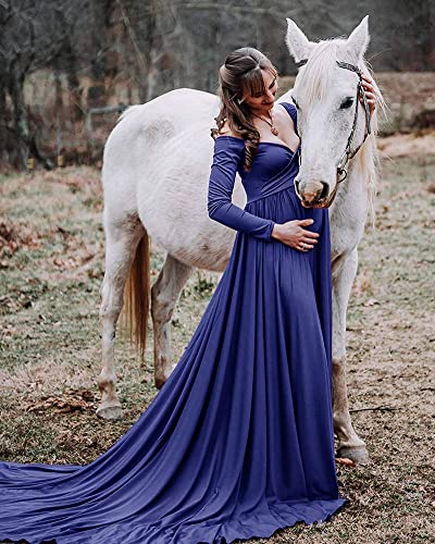 YAOTT Abito Donna Premaman con Spalle Scoperte Abito Gravidanza Manica Lunga con Scollo A V Abito per Foto in Gravidanza Abito da Festa per Baby Shower,Blu,XL