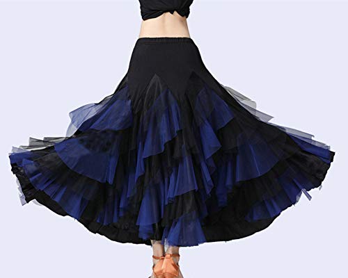 YAOTT Donna Danza Latino Gonna Lunga Flamenco Concorso di Tango Gonne di Danza Moderna Performance Elegante Blu Zaffiro Taglia Unica