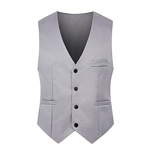 YAOTT Gilet Formale da Uomo Slim Fit Elegante Vintage Classic Business Suit da Cerimonia Vest Casual Top Senza Maniche Scollo A V Gilet con Tasche,Grigio,4XL