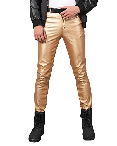 YAOTT Leggings Uomo Pantaloni Slim Fit Pantaloni da Festa Impermeabili Pantaloni in Ecopelle Pantaloni Casual da Uomo in Pelle Sintetica Nera con Pantaloni Hip-Hop Biker Jeans Oro 30W