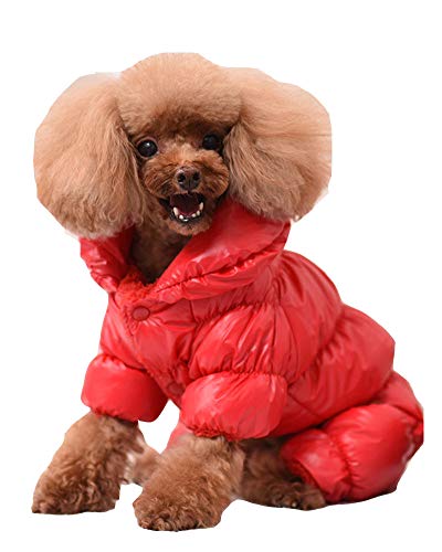 YAOTT Piumino Impermeabile Invenale Cane Tutina per Cani con Pantaloni Cappotto Impermeabile per Yorkshire Terrier Chihuahua Pomerania Caldo Cappotto Cucciolo di Cane da Compagnia Rosso Brillante S