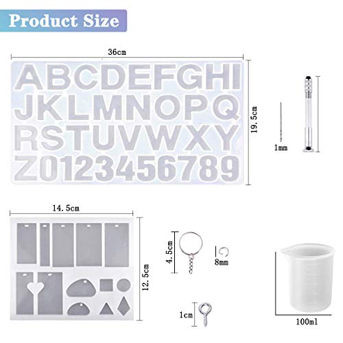 YAOYIN Stampi in Silicone per Resina, 19Pz con Numeri e Lettere Dell'alfabeto in Resina Epossidica, per Portachiavi, Numero Civico, Gioielli, Ciondoli, Strumenti di Insegnamento