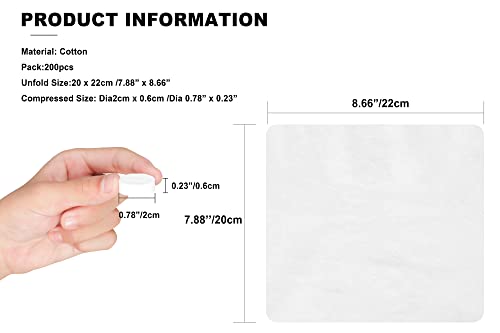 Set prezioso: viene venduto 200 pezzi in una confezione, ogni prodotto è confezionato singolarmente, confezionato in modo asettico per prevenire la polvere, portarlo con te per viaggi, escursioni, campeggio o portarlo come salviettine domestiche e lavaggio quotidiano.