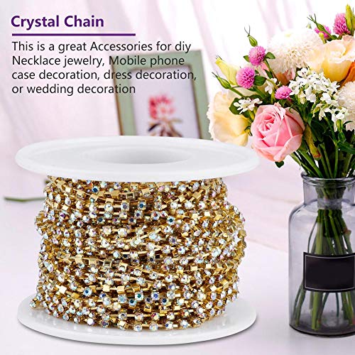 10 Yard catena di strass, fai da te cristallo artificiale di cristallo involucro di maglia rotolo di cristallo bling rotolo per la collana accessori di decorazione di nozze(ss6 oro)