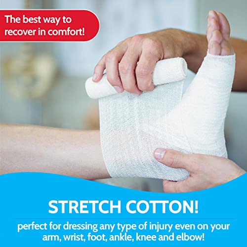STRETCH COTTON! THE BEST WAY TO RECOVER IN COMFORT: If you've been looking for medical grade wound care dressing that can dress a variety of wounds, then your search is over! That's because our bandages are micro-weaved with flexible, low lint cotton that is porous enough to breathe easily and allows maximum clinical flexibility. That means it's perfect for dressing any type of injury even on your arm, wrist, foot, ankle, knee and elbow!