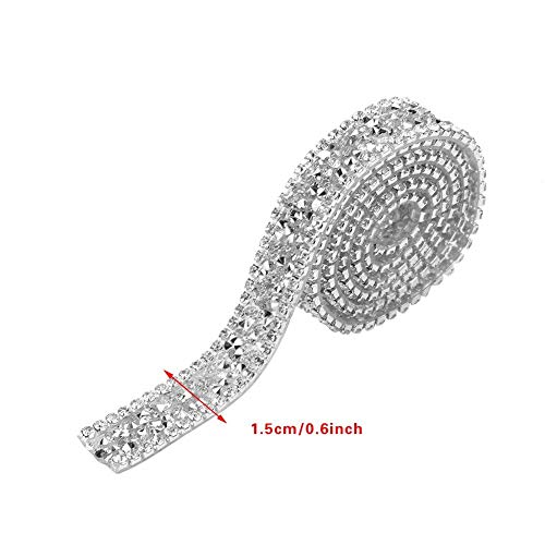1 yard 4 righe Nastro di strass di cristallo, nastro di fasciatura avvolgente in maglia di diamante scintillante per la decorazione della festa nuziale, larghezza 15 mm (scheggia)