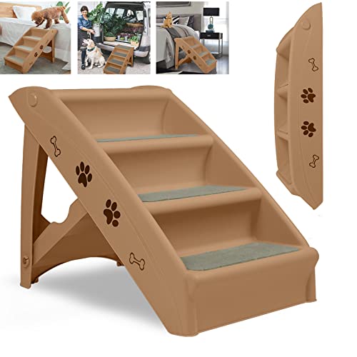 YARDIN Scala per cani di piccola taglia, pieghevole, in plastica PP, con gradini antiscivolo, per animali domestici, carico massimo 75 kg, 49 x 39 x 61 cm (marrone)
