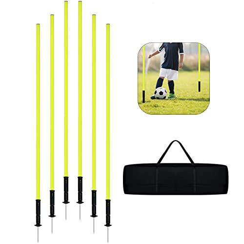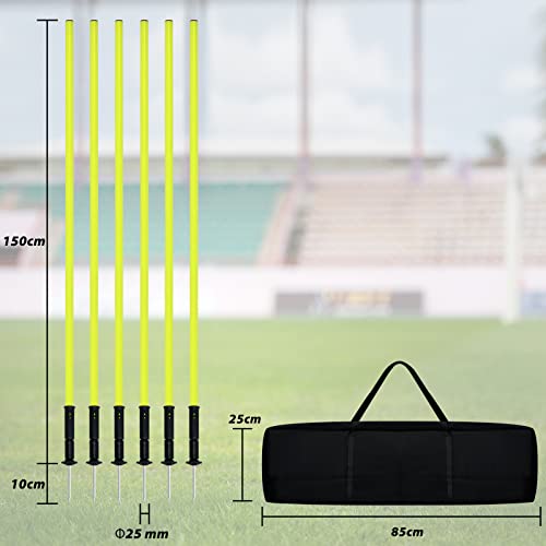 YARDIN Slalom Poles - Set di 6 aste da calcio, con borsa per il trasporto e giunto a molla e punta in metallo, per allenamento agilità e coordinazione, 1,5 m, colore: Giallo