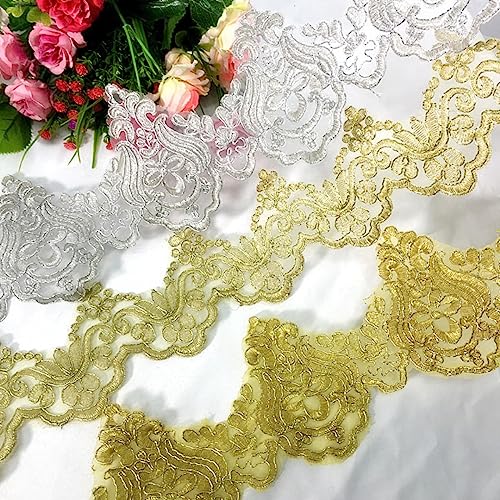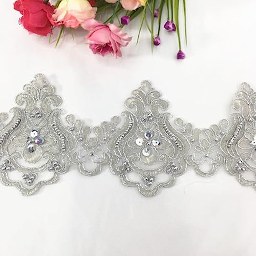 3 Yard/Lot Argento dorato Car Bone Pizzo Abito da sposa Velo Perline Paillettes Tessuto di pizzo Costume da ballo Accessori M0430-2 Perline argento