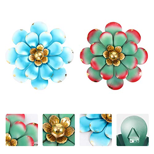 Yardwe - Decorazione da Parete in Metallo con Fiore 3D, Decorazione da Parete, Decorazione da Parete per Giardino, Camera da Letto, casa, Colore: Verde e Blu