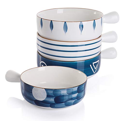 Yarlung Set di 4 ciotole per zuppa di cipolle francesi con manico, impilabili in ceramica verniciata, adatte al forno, per servire peperoncino, zuppa di tortilla farina d'avena zuppa di tortilla, blu