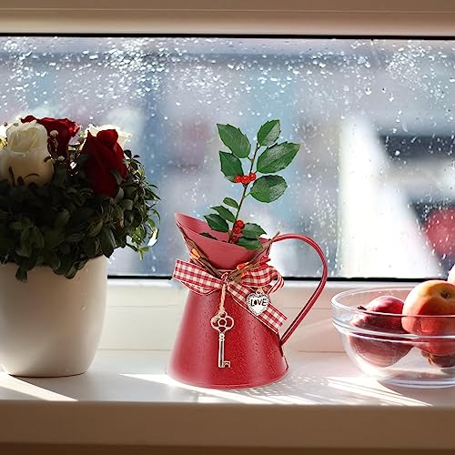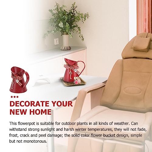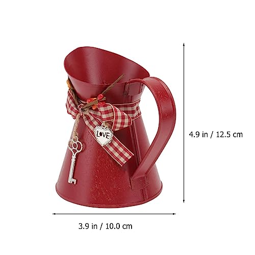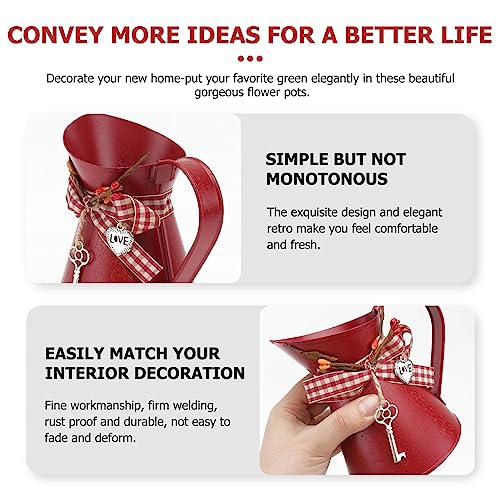 YARNOW Vaso da fiori vintage rustico, annaffiatoio per fiori in stile shabby chic, vaso decorativo in metallo, per ufficio, scrivania, balcone, soggiorno, decorazione rossa