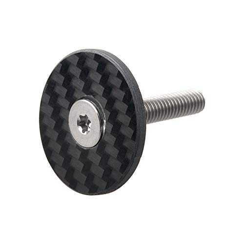 Yaruijia Cuffia in fibra di carbonio con bullone in titanio M6 x 35 mm per attacco manubrio MTB da 1-1/8" (lucido) (titanio, tappo superiore lucido+bullone M6x35mm)