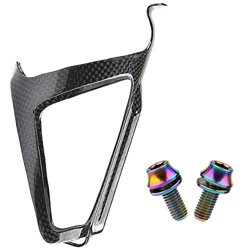 Yaruijia - Gabbie per bottiglia d'acqua in fibra di carbonio leggera con viti in titanio M5 x 12 mm, per mountain bike da strada (bullone a forma di rainbow+lucido)