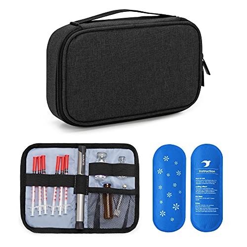 Yarwo Porta Insulina Termico per Bambino e Adulto, Borsa da Viaggio con 2 Impacchi di Ghiaccio per Penna Insulina, Diabete Siringhe e Altri Accessori per Diabete, Nero