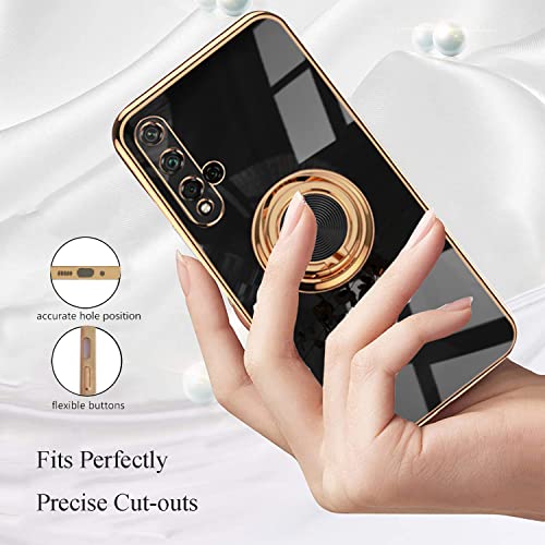 Yarxiawin Compatibile con Cover Huawei Nova 5T con Anello Magnetico, Custodia Huawei Nova 5T Silicone Sottile Morbida Nero Case Antiurto Cover Honor 20 con Metallico Supporto (Nero)