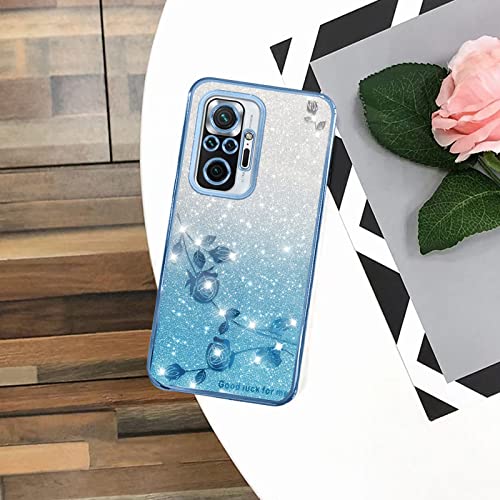 Yarxiawin Per Cover Redmi Note 10 Pro Trasparente Glitter Fiore Custodia Xiaomi Redmi Note 10 Pro Cover Silicone Morbida Brillantini Lusso Lucido Case Sottile Viola (Blu)