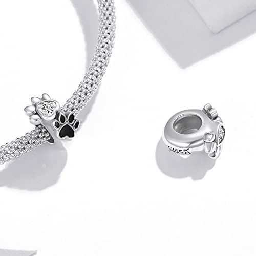 YaShuo Charm con scritta "I Love My Dog", in vero argento Sterling 925, a forma di zampa, con animali, per braccialetti Pandora, Cristallo Smalto