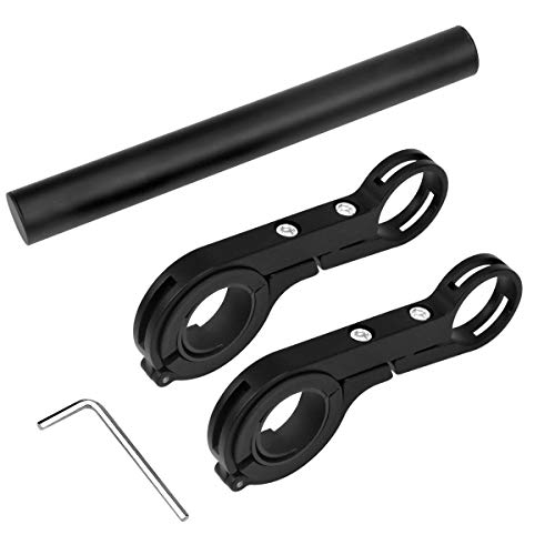 Yasmous 20cm Bicicletta Manubrio Extender Manubrio Bicicletta Estensore in Lega di Alluminio Estensione Manubrio Bici Prolunga Staffa Torcia con Doppie Morsetti Chiave a Brugola per Bici, Nero