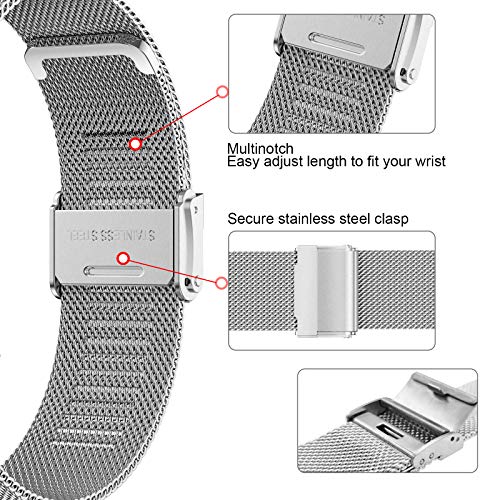【Materiale in acciaio inossidabile ad alte prestazioni】: Il cinturino Fitbit Versa 2 è realizzato in rete metallica di alta qualità in acciaio inossidabile intrecciato, che è forte e resistente. I bordi levigati lo rendono liscio e il materiale metallico ti dà una sensazione di freschezza. La fibbia pieghevole è stata aggiornata a "doppia chiusura" e si piega in modo ordinato, sicuro e saldo.