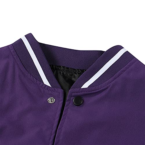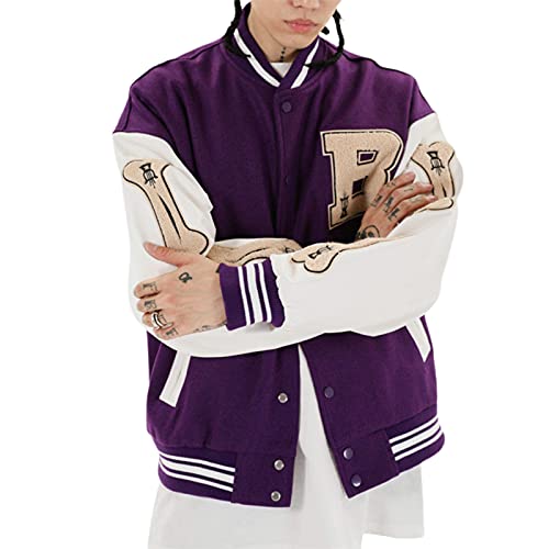 Yassiglia Giacca Donna da Baseball Oversize Giacca Donna in Pelle con Ricamo a Lettera Ossea a Maniche Lunghe Cappotto Donna Oversize Giacca Uomo Giacca Unisex (Viola, M)