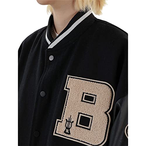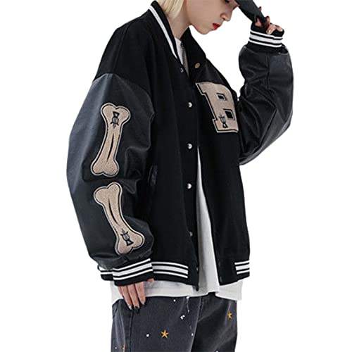 Yassiglia Giacca Donna da Baseball Oversize Giacca Donna in Pelle con Ricamo a Lettera Ossea a Maniche Lunghe Cappotto Donna Oversize Giacca Uomo Giacca Unisex (Nero, M)