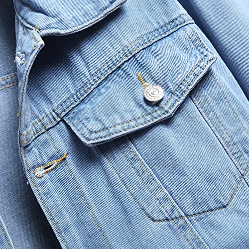Yassiglia Giacca da Donna in Denim Lavato Giacca di Jeans Boyfriend Abbottonata a Maniche Lunghe Cappotto da Donna Casual (Blu, S)