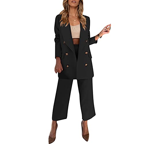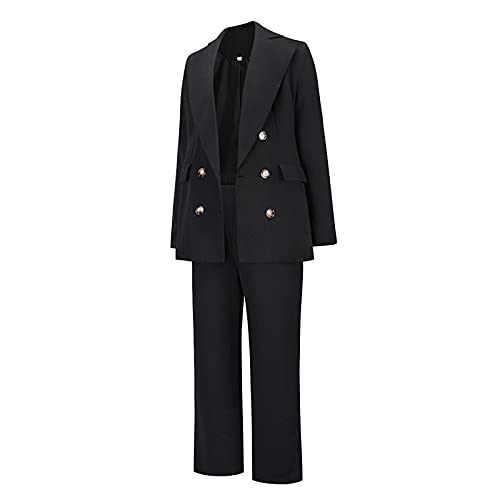 Yassiglia Tailleur Donna Pantaloni e Giacca Tuta Elegante 2 Pezzi Blazer Lungo + Pantaloni Lunghi Completo Donna Abbigliamento Casual e alla Moda per Ufficio Laurea S-XXL (M, Nero)