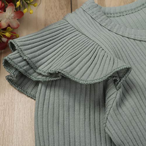 Yassiglia Tutine Neonata Body Insieme dei Pantaloni della Tuta Bambina del Pagliaccetto Dell'increspatura del Manicotto Lungo (Fagiolo Verde, 12-18 Mesi)