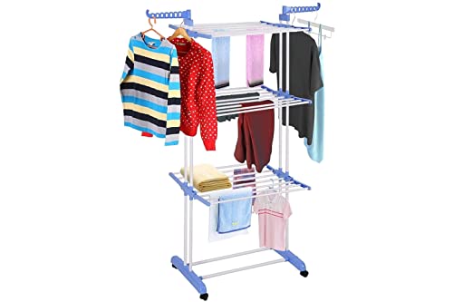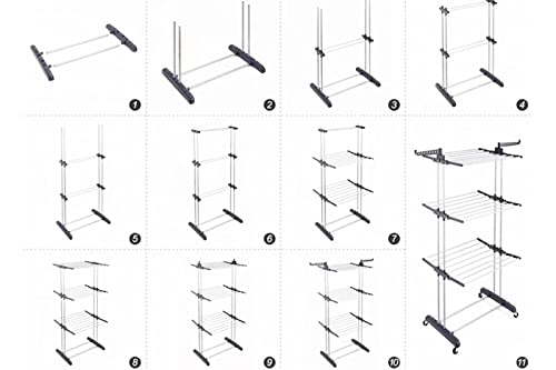 YASTA Stendibiancheria a Torre Da Pavimento Ripiegabile 3 Piani Stendino Verticale 3 Livelli Con Ruote