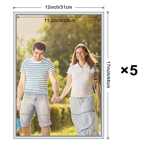 Yastouay - Set di 5 cornici portafoto in plastica MDF con ganci, vetro acrilico infrangibile, per soggiorno, da appoggiare e appendere, design moderno per più foto, colore: argento, A3, 29,7 x 42 cm