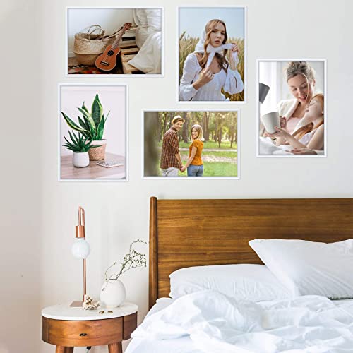 Yastouay - Set di 5 cornici portafoto in plastica MDF con ganci, vetro acrilico infrangibile, per soggiorno, da appoggiare e appendere, design moderno per più foto, colore: bianco, A3, 29,7 x 42 cm
