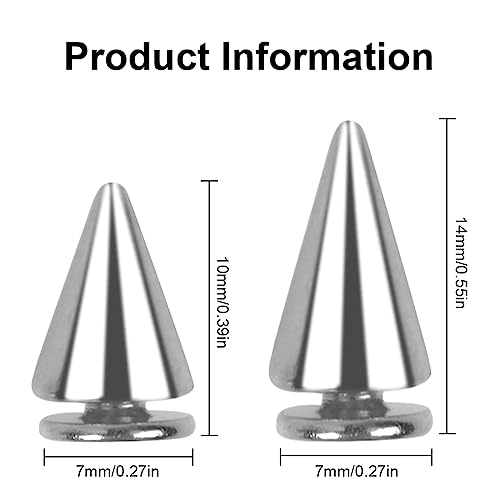YATEICBC- 100 PCS Metallo Punk Rivetti Decorativi Cono Borchie Punk Punta Rivetti Vite Rivetti Metallo Fai da Te Pelle Artigianato Abbigliamento Borse Scarpe Decorazioni. 7x10mm, 7 * 14mm (Argento)