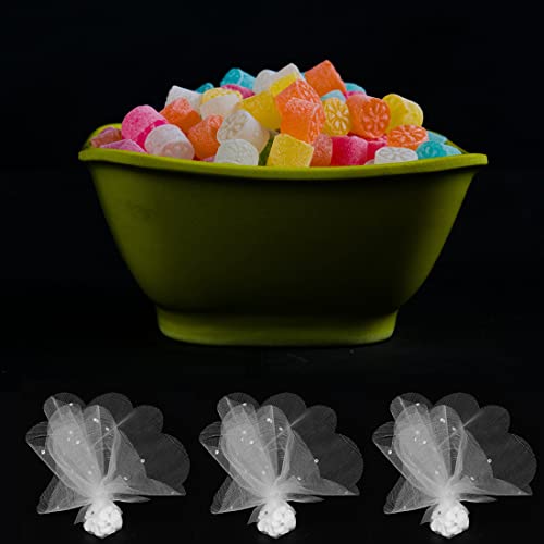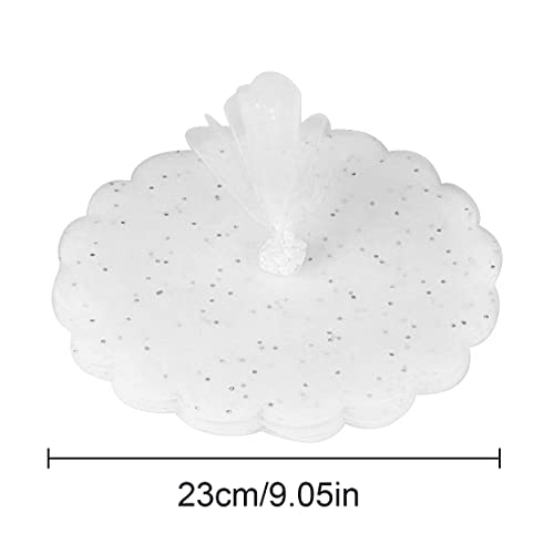 YATEICBC 60 Pz. Velo di Fata con Bordo Sbiego Raso,Tulle Organza,Fata Bianco Tulle Organza Tondo BOMBONIERE,Ideale per Bomboniere, Fai da Te, Confetti (Bianco)