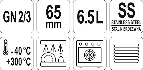 Yato - Contenitore professionale in acciaio inox, forato, 2/3, dimensioni a scelta 65-100 mm, per gastronomia e gastronomia (altezza 65 mm)