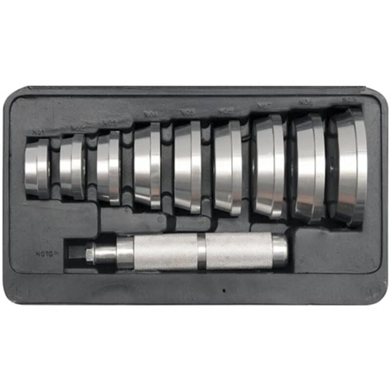 Il set di cuscinetto e sigilli è progettato per l'uso professionale nei negozi di servizi meccanici. È usato per fissare le guarnizioni, e i cuscinetti nei posti. Protegge contro l'incuneamento degli elementi ben aderenti. L'uso di martelli può causare indentazioni superficiali e danni alla superficie dei dischi, ma non causerà alcun danno al cuscinetto. I dischi hanno il cono montato sul profilo delle guarnizioni e il diametro dell'anello esterno sul cuscinetto. I 10 pezzi del set vengono consegnati in una custodia soffiata. Materiale: Alluminio Diametro dei cuscinetti: 40, 44, 50, 59, 63, 65, 72, 76, 81 mm Lunghezza: 150 mm Il set contiene 10 pezzi SKU: 401814