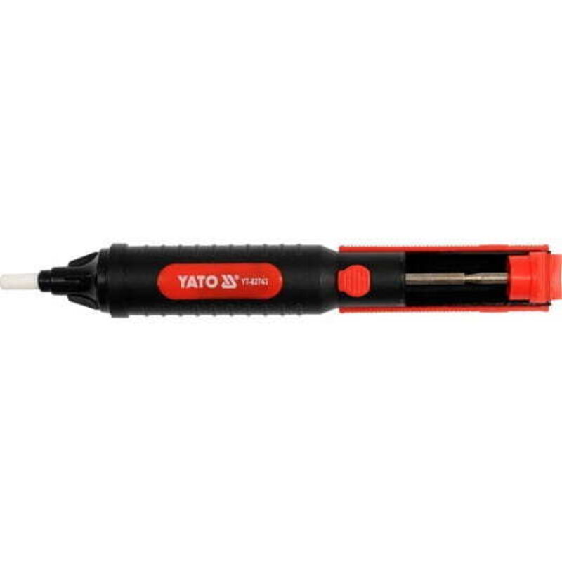 Caratteristiche Colore del prodottoNero, RossoMaterialePTFE, cloruro di polivinile (PVC)Tipo delprodotto*Saldare saldare saldare saldare saldare saldare stagnoBrand compatibile *Yato Contenuto delimballaggio Quantità perconfezione1 pezzo(i) Peso e dimensioni Lunghezza206 mmLarghezza21,8 mm